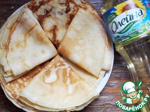 Пока соус остывает, приготовить блинчики с использованием растительного масла Олейна.