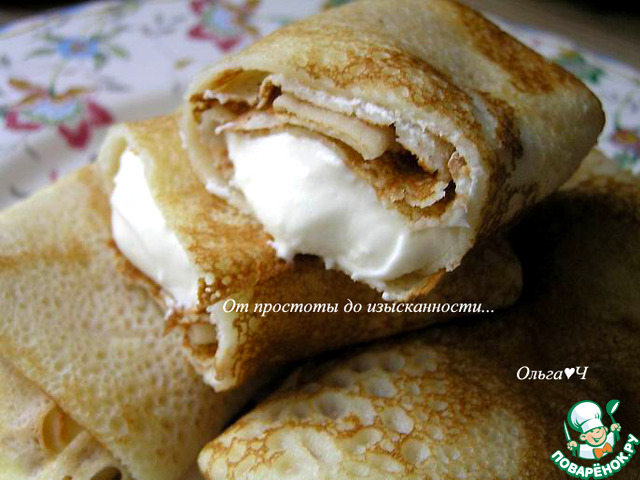 Рецепт «Блинчики с творогом и курагой»: