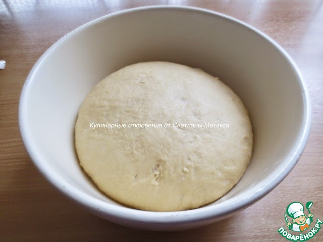 Замешиваем мягкое тесто, накрываем его и ставим в теплое место на полтора часа.