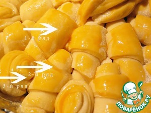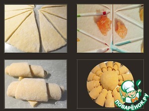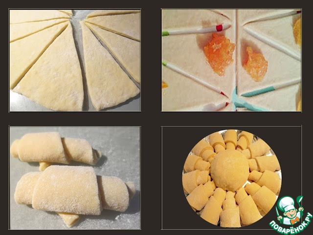 На каждый треугольник положить 1 ст. л. апельсинового джема и свернуть в рулет.