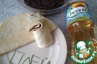 Выкладываем ложку гарнира в центр блинчика.