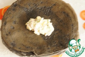 Рецепт «Овощной топпинг с икрой к черным блинчикам»: