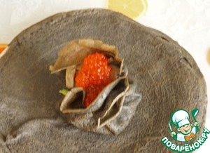 Овощной топпинг с икрой к черным блинчикам