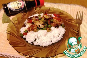 Промаринованное мясо обжарить в духовке, перевернув 1 раз. Я жарила в микроволновке, установив специальную функцию. Можно конечно и на сковородке, но мне захотелось сделать более диетический вариант:)
