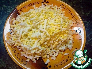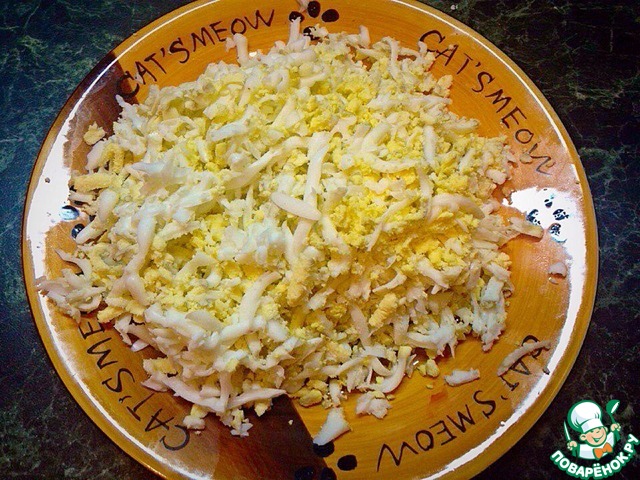 С яйцами совсем все просто, их надо отварить и мелко порубить. Готово!