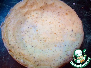 Следующим шагом будет приготовления блинчиков. У каждого есть свой любимый рецепт блинов, я не навязываю Вам конкретно этот, здесь подойдут абсолютно любые тонкие блинчики. Мой очень простой. Я использую шейкер, взбиваю в нем яйцо, молоко, соль. Далее добавляю муку и еще раз взбиваю, в конце добавляю растительное масло, зелень и перемешиваю до однородности. Осталось только испечь блинчики. -