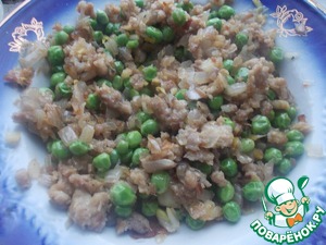 Затем горошек, тушим пару минут и выкладываем на тарелку.