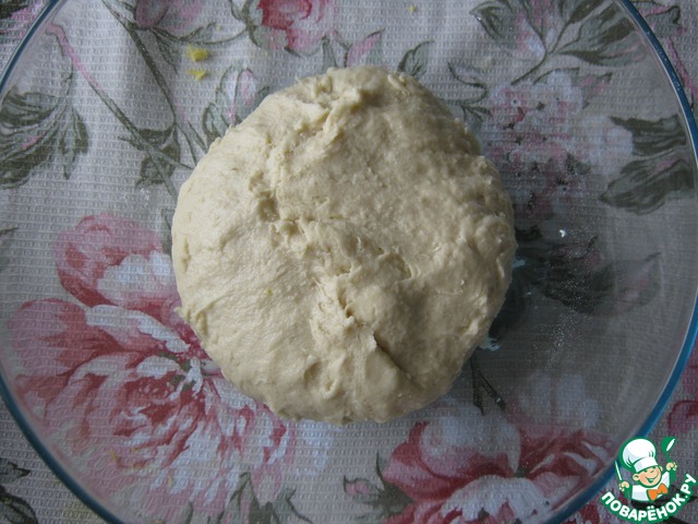 Замесить тесто в течение 15 минут (не меньше). Как бы не хотелось, муку подсыпать больше не нужно. Получившееся мягкое липкое тесто положить в большую чашу, накрыть полотенцем и отправить в теплое место для расстойки.