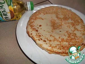 Напечь несладкие блины. Я пекла блины на кефире с использованием растительного масла "Олейна".