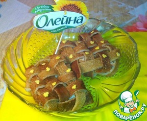 Постепенно каждую блинную полоску (в основе) поднимаем и кладём другую блинную полоску. И так на всем протяжении нашей блинной основы ( в шахматном порядке).