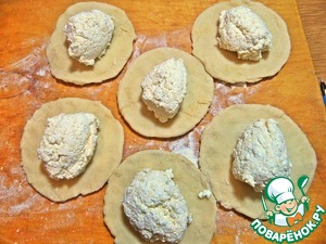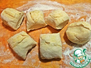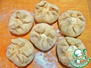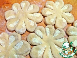 Удобнее окунуть пальцы в муку, чтобы не прилипали.