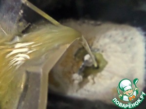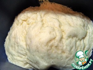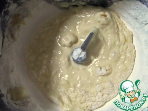 Вливаем жидкий состав в сухой. Включаем хлебопечку на программу "замес теста" 1 ч. 30 мин.