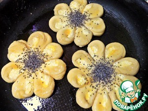 Смазать яйцом, смешанным с молоком, в центр насыпать мак.