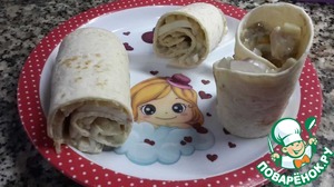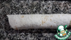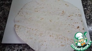 Она: на доску выложим тортилью или сложенный в 2 слоя лаваш.