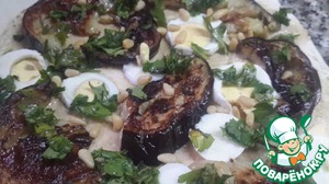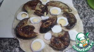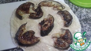 Она: выложим несколько обжаренных на растительном масле ломтиков баклажана.