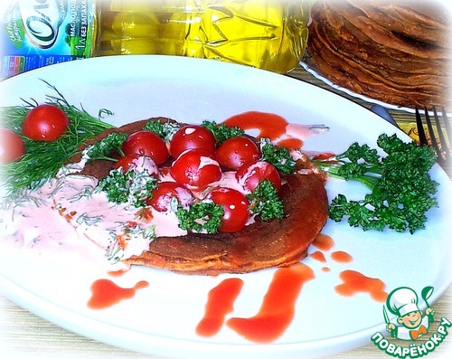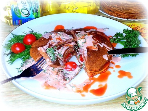 Рецепт «Блины томатные с томатно-сметанным соусом»: