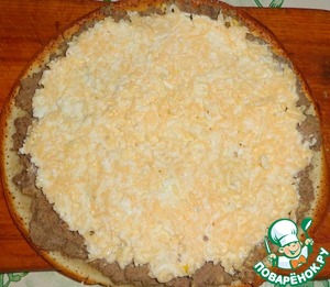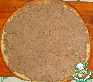 На блин выкладываем слой из печени.