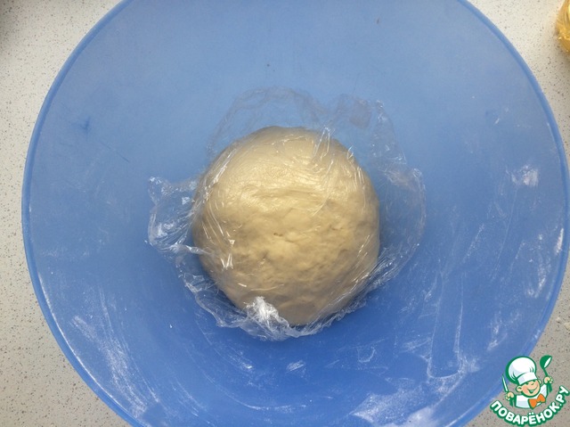Перекладываем в смазанную маслом миску, накрываем и убираем в тепло на 40 минут -