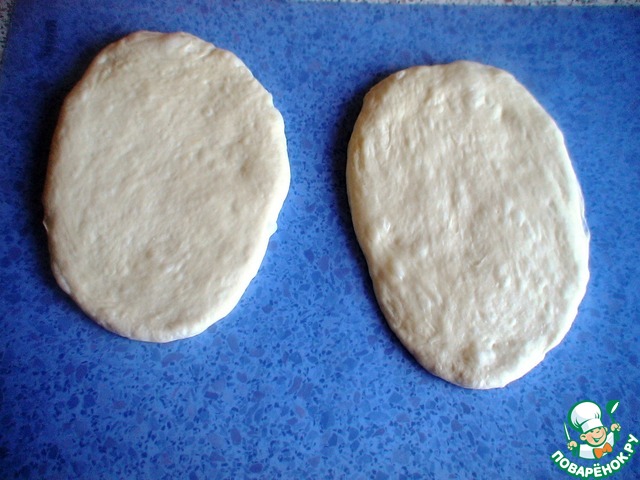 Каждый кусочек теста раскатать в лепешку толщиной 1 см