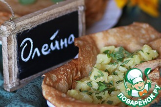 Рецепт «Блинные корзинки с яичным паштетом»: