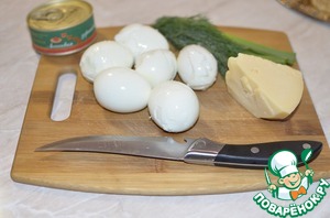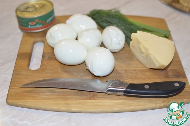 Яйца отварить в крутую. Сыр натереть на средней терке.