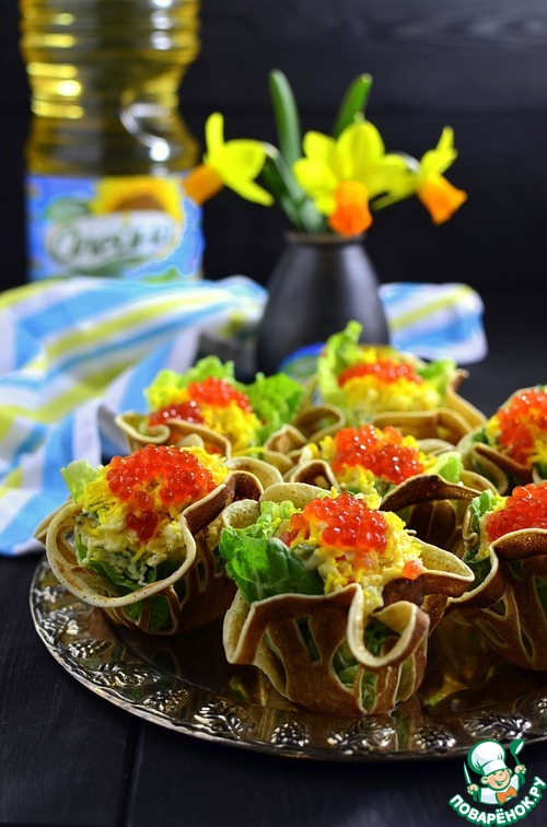 Блинные корзинки с яичным паштетом