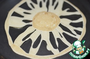 Потом рисуем между кругами линии-лепестки. Выпекаем с двух сторон.