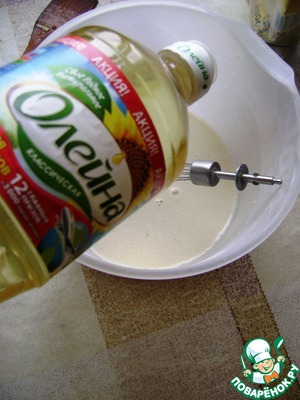 Вливать молоко тонкой струйкой и размешивать венчиком до образования жидкого теста. -