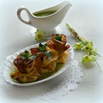 А можно и просто подать начинку и соус отдельно и поскорее приступить к чаепитию.