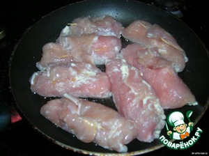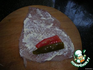 Грудку порезать как на отбивные. Посолить, отбить, смазать майонезом.
