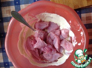 Тщательно все перемешиваем. А лучше всего перемешивать руками. По вкусу добавляем лавровый лист и оставляем на некоторое время, можно даже закрыть крышкой. Так индейка быстрее будет пропитываться нашим соусом.
