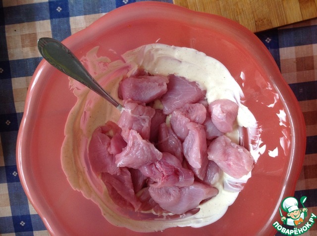 • Разрезаем мясо на небольшие кусочки