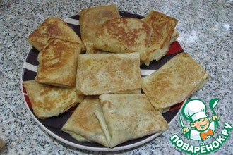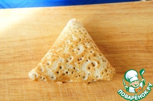Подвернуть уголки под начинку. Получатся вот такие милые, пухленькие треугольнички.