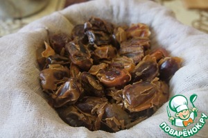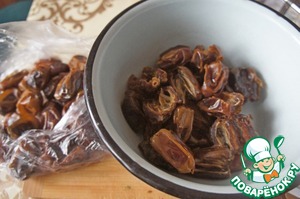 Откинуть финики на дуршлаг и отжать лишнюю воду.