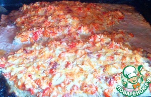 Равномерно распределяем овощи по рыбе