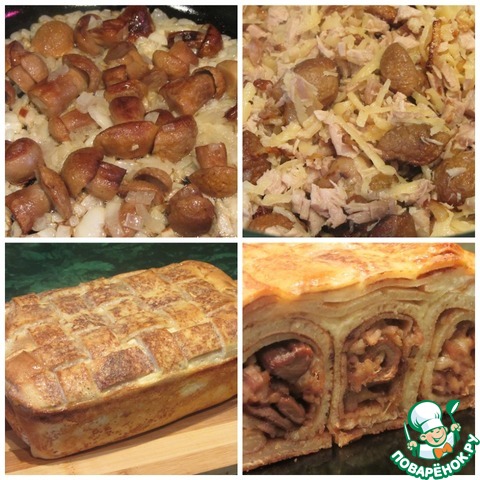 Рецепт «Блинный пирог с курицей и грибами»: