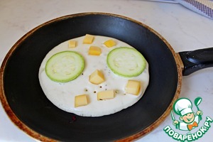 • Для начинки с кабачком также на тесто выложить кружочки кабачка и кубики сыра.