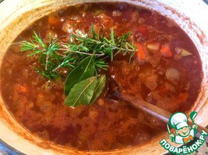 4. Томить на медленном огне 3 часа. При необходимости подливать воду.