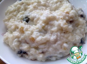 Займемся приготовлением начинки. Промойте рис в холодной воде и залейте рис 200 мл воды, доведите до кипения, убавьте огонь и варите с открытой крышкой 8 минут до выкипания воды. Добавьте молоко, 15 г. сахара, щепотку соли, доведите до кипения и варите рис на слабом огне, постоянно помешивая, до состояния густой каши 10 минут, добавьте масло, перемешайте, снимите с огня.