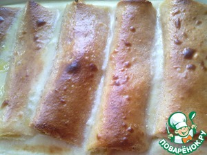 Готовые блины с начинкой из риса, изюма и чернослива в сметанно-коричном соусе готовы.