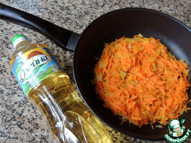 Спассеровать овощи на растительном масле (до мягкости, не зажаривать).