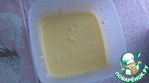 Яйца взбиваем с сахаром и ванильным сахаром до увеличения массы и побеления. Добавляем масло, молоко и перемешиваем.