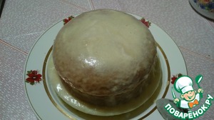 Так как нужен был большой торт, а за неимением в данный момент всего своего инвентаря и хорошей духовки, выпекала два бисквита в мультиварке и ставила их друг на друга.