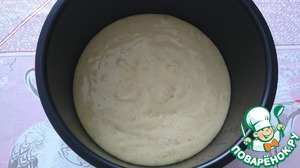 Выливаем тесто в чашу мультиварки и ставим режим выпечки. После окончания даем минут 10 постоять и вынимаем. Аккуратно извлекаем его из чашы и выкладываем на решетку до полного остывания. После чего разрезаем пополам на два коржа.