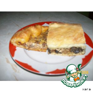 уложить на смазанный лист, распределить на нем грибную начинку.