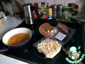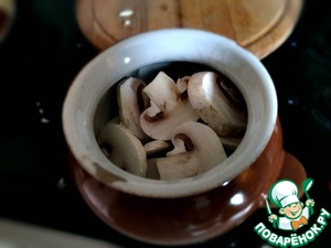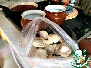 Пока пельмени греются, мы берёмся за грибы. -