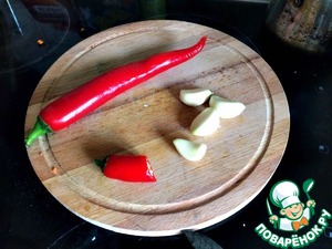 Подготавливаем дополнительные ингредиенты в лице острого перца чили и чеснока. -