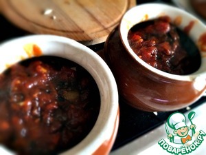 И, если вы внимательно читали рецепт, то паста разжижается водой, которую добавляют в горшочки.