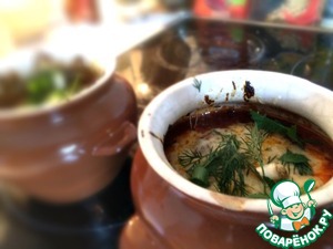 Рецепт «Пельмени в горшочках с томатной пастой»:
