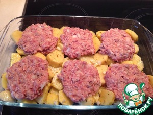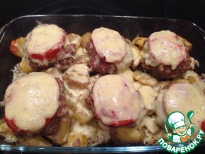 Рецепт «Биточки из фарша с картофелем в духовке»: